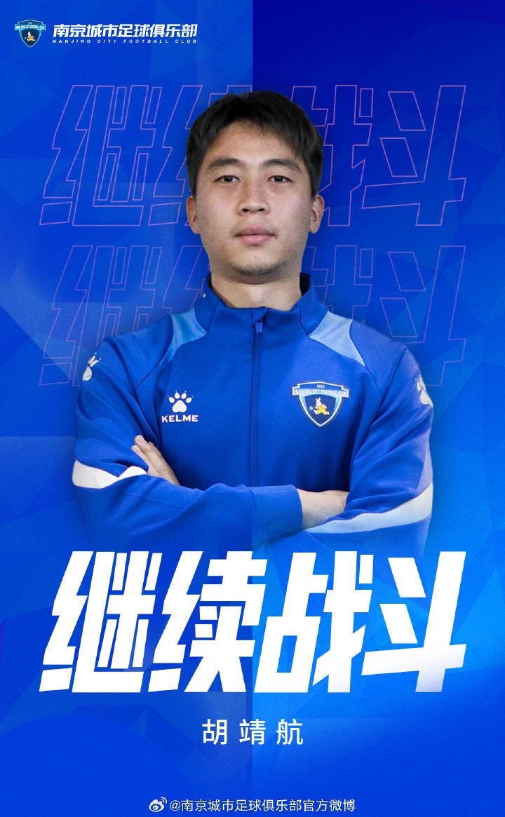 经友好协商,南京城市足球俱乐部与一线队球员胡靖航就续约达成一致。